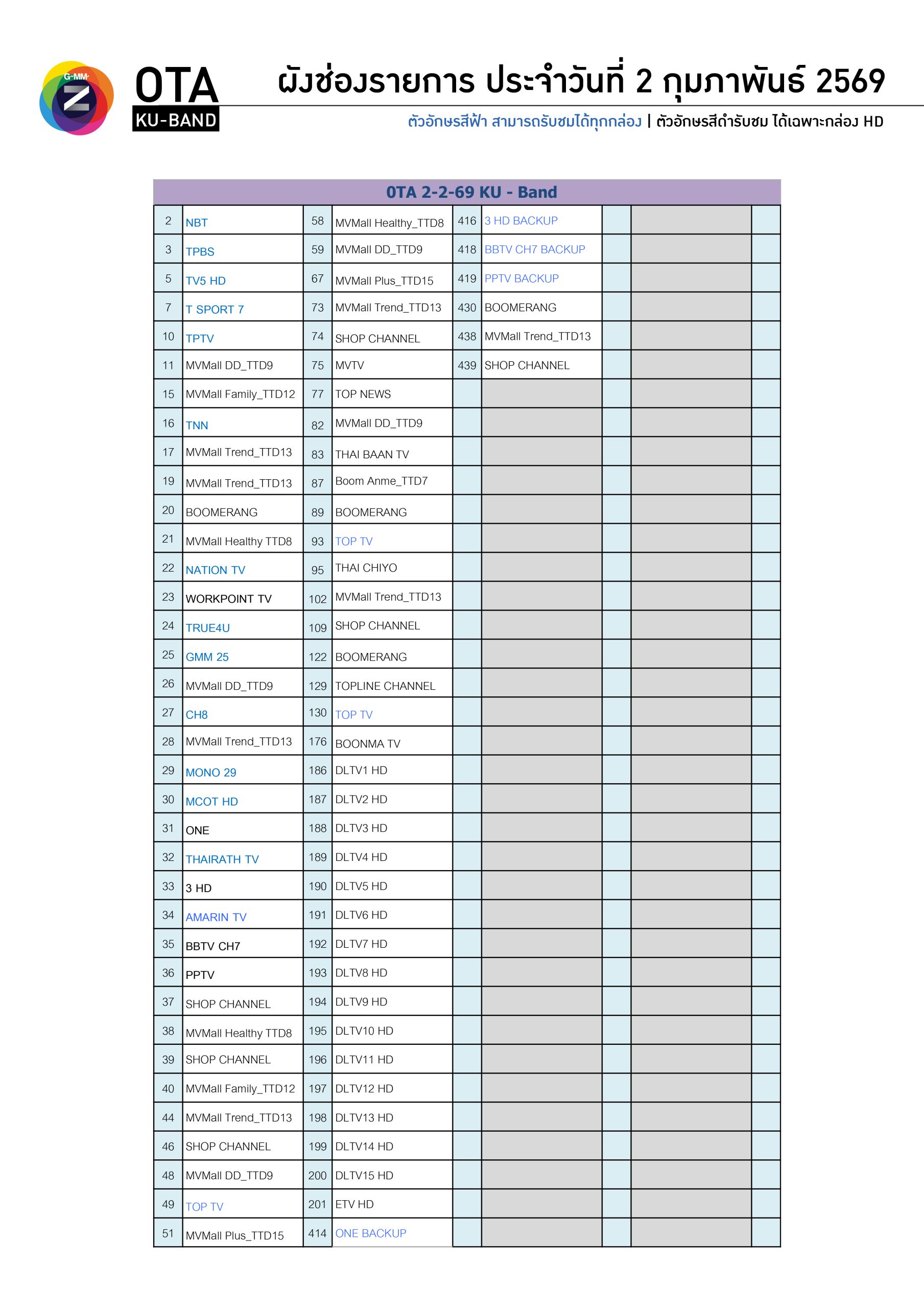 - ผู้ให้บริการช่องรายการสามารถเปลี่ยนแปลงได้โดยไม่ต้องแจ้งให้ทราบล่วงหน้า -